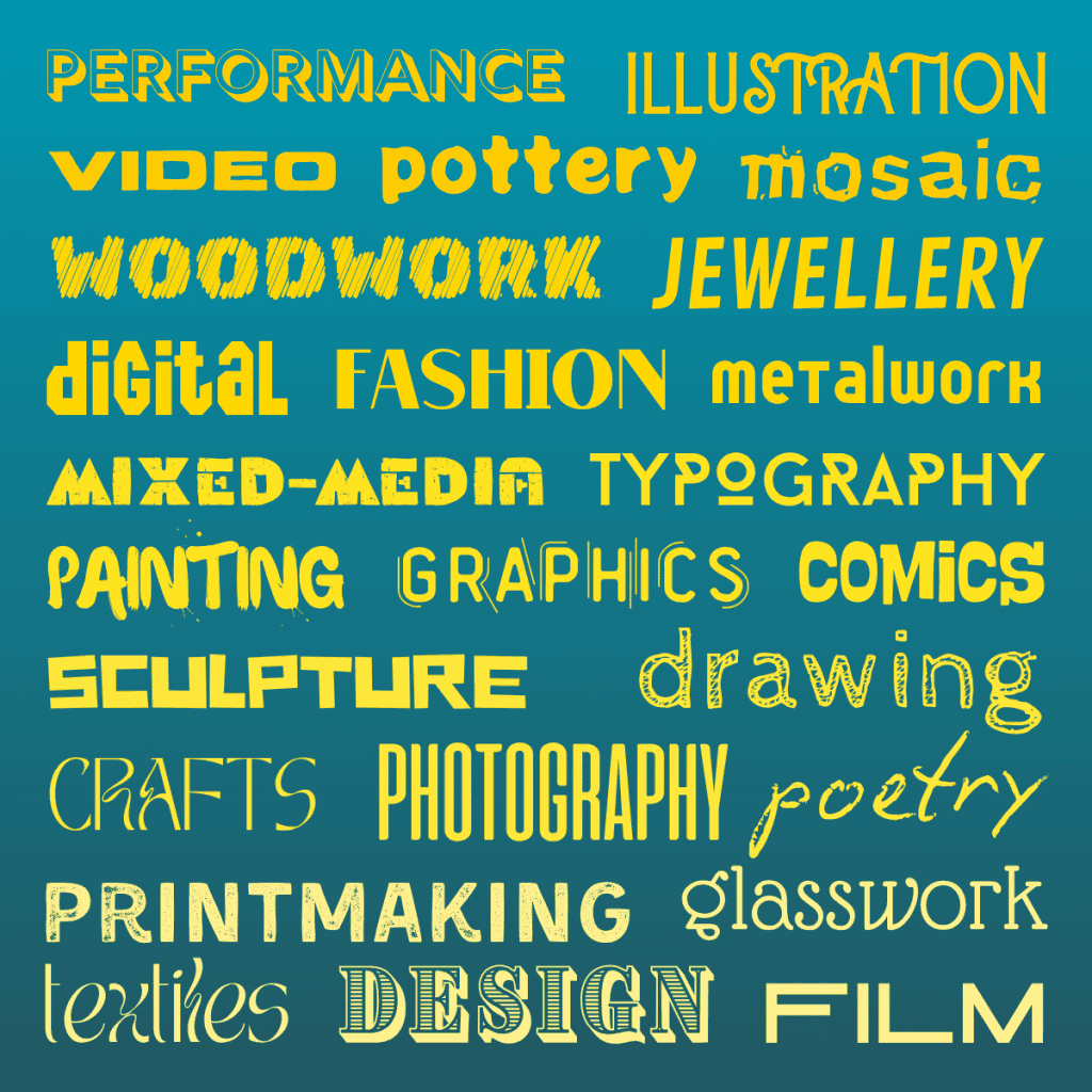 - The artists’ chosen art forms. For example, painting, photography, sculpture, etc.