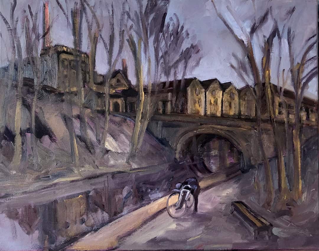 “Born in Leeds, I studied Painting at Bradford College of Art and Falmouth School of Art. I paint in oil on canvas, often on location. My subjects feature the northern landscape, both urban and rural.”