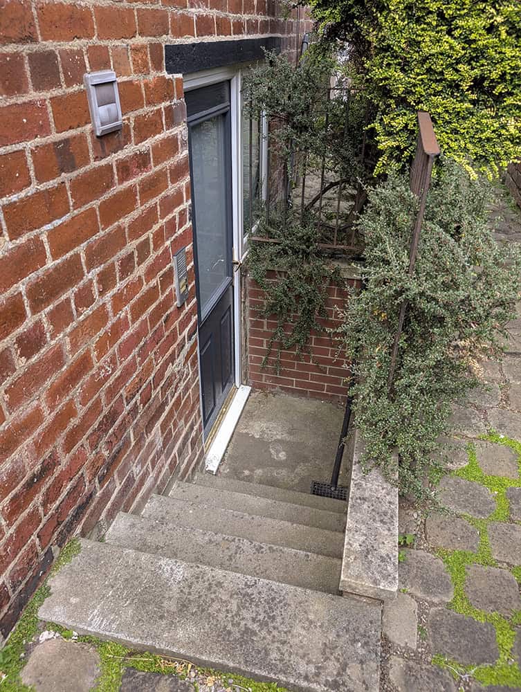 ● There are five stone steps that lead down to the basement. The height of the steps is 15 cm.