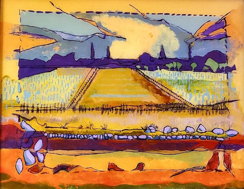 “Creatively inspired by my walks with my whippet, I love to abstract shapes, colours, textures, and a sense of place to create collages that reflect my experience. In addition, some of my pieces describe the essence of the Monstera plant.”