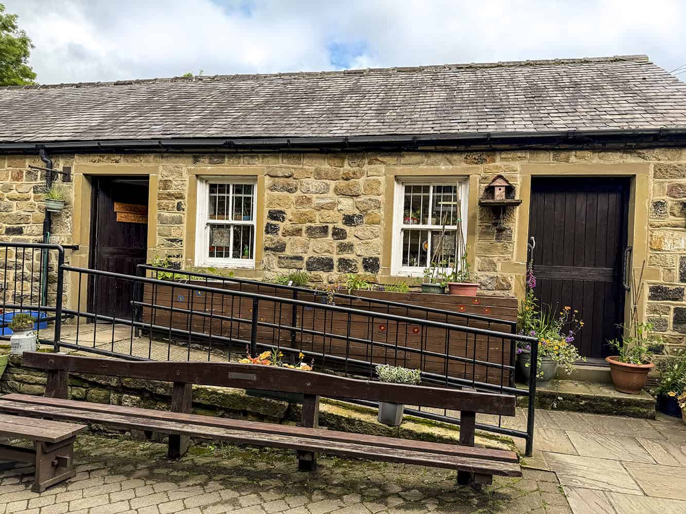 - There are stone slabs at the top of the ramp outside the classroom door.